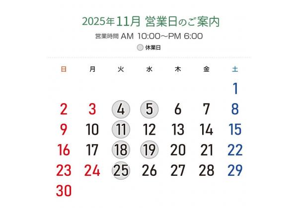 2025年11月営業日カレンダー