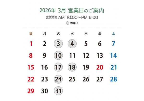 2026年3月営業日カレンダー