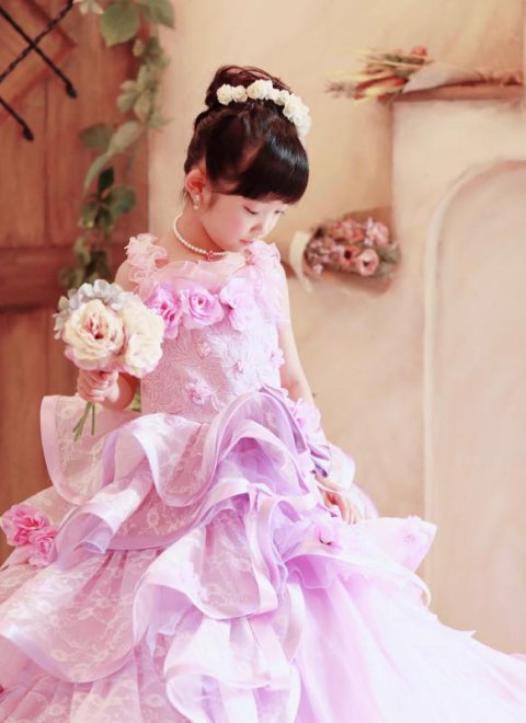 3歳さんの頃の可愛らしい印象が強くて、七五三は来年だったかな?なんてうっかりしていた私たち。 お着物もドレスも全部自分で決めるくらいお姉さんになっていたのでした。ヘアースタイルは和洋兼用のアップスタイルにして、髪飾りやアクセサリーもちゃんと自分の意見を話してくれます。 撮影中は目線やネックレスの位置を確認するなどすっかりレディー👸になってスタッフもびっくり😳 時折見せる「キャハ💕」という笑顔に、あ、まだ小学生だった😅と我に返る私たちでした。