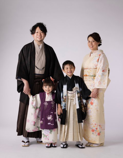 七五三の前撮りでは家族みんなで着物姿になる!なんてことができます。ママだけみんなより先に(1時間くらい前)にスタジオ入りで、お子さんとパパは後から来店していただきます。着物姿のママが現れたらお子さんも大喜び😆テンション☝️☝️めちゃくちゃ上がりますよ〜。 主役のお子さん(特に3歳さん)はママの着物姿を見て「ママとおんなじく着物きる〜!」とやる気満々になるんです。 ふだん家事に育児に頑張っているママを若葉が綺麗にします。 子どもが主役?いえいえ😊七五三は家族みんなが主役です!