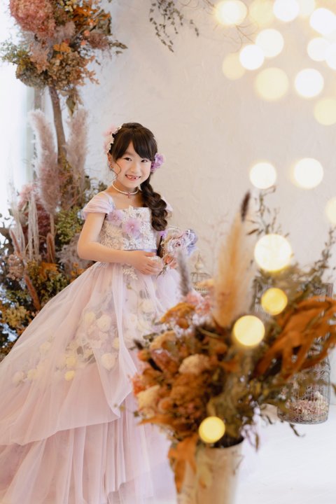 ドレスを着るのがとっても楽しみだった7歳さん。ヘアセットの時からドキドキワクワク💕どんなスタイルになるのか興味津々でした。長くしていた髪で編み込みしながら三つ編みアレンジしてもらって、ドレスを着たらまるでディズニープリンセス! お留守番の妹さんには内緒なんですって。写真を見たらきっと「わたしもやりたかったぁ〜〜〜!」って言われちゃいますね😅