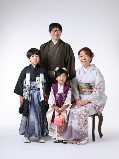 家族みんなで和装は七五三の今だからこそ。パパやママもお着物になるとお子さん達のテンションも上がります。普段は見られない着物姿に撮影中もニコニコです。