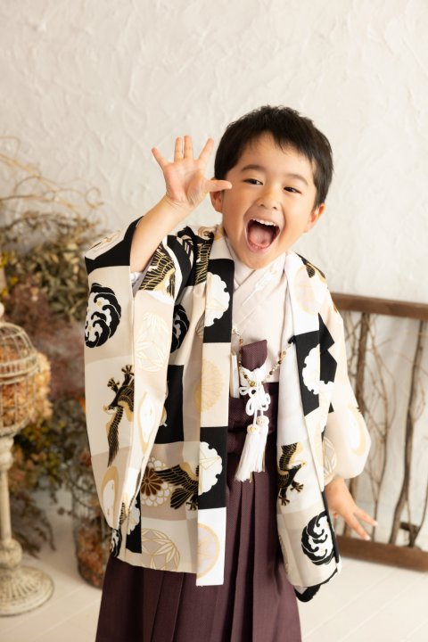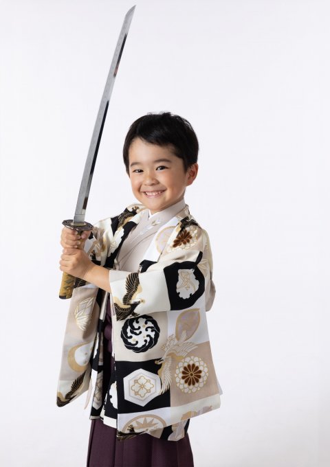 七五三5歳さんの憧れは、やっぱり刀のポーズです。若葉が撮影に使用している刀は、お土産屋さんによくあるプラスチックのおもちゃ刀ではありません。適度に重さがあって、抜くとキラリと光るんですよ。構えた瞬間に笑顔になるのがかわいいんです。 なかには本当に切れると思ってめちゃめちゃ緊張する5歳さんや、これで悪者をやっつけるんだーっと刀を振り下ろすお子さんもいたりで、勇ましい姿が頼もしく感じられる若葉です。 元気いっぱいの5歳さんの撮影はいつも楽しいです。