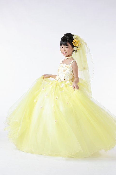 七五三ではドレスも人気です。若葉のドレスは足まで隠れるロングドレスがほとんどなので、み〜んなプリンセスになれます。