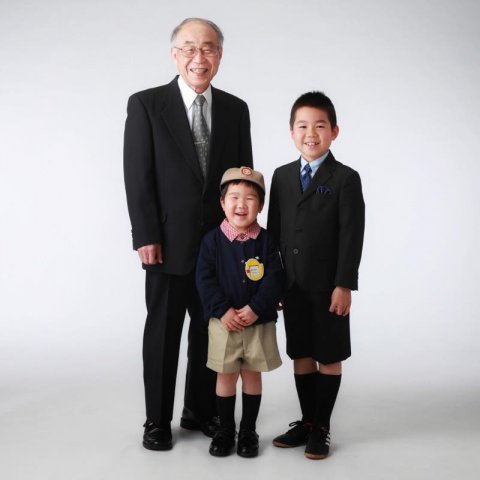 お店に入ってきた時からニッコニコの笑顔でとっても可愛い園児さん。幼稚園はすごーく楽しいそうです。「たくさん遊んでくるみたいで毎日汗びっしょりで帰宅するんですよ〜」とお母さんも嬉しそうです。いっぱいお友達もできたんだね! 今回は家族写真の他にお兄ちゃんおじいちゃんとも一緒に撮りました。若葉では「孫と一緒」のカットは撮影料サービスで、さらに手札プリント1枚付きです。おじいちゃんおばあちゃんと一緒に撮って、もう一つ思い出残しましょうね。
