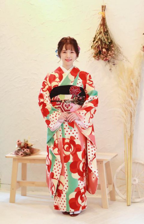 お嬢さんの雰囲気にぴったりの個性的な振袖で成人式前撮り。今回のヘアーメイクは美容室ドナダルテさんが担当でゆるふわのアップスタイルです。玉城ティナ振袖を可愛く着こなしてくれました。今シーズン初めてのナチュラル背景で撮影してみました。 若葉の衣装ルーム「Cobaco:こばこ」では古典柄からレトロモダン、IKKOプロデュースの振袖など多数取り揃えています。お友達とかぶりたくない、個性的なのが好き…などご希望をお伝えください。