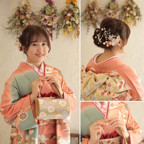 お着物は長く着用できるものです。小物の色柄を変えることでまた違った魅力が生まれますので、もしもお持ちの振袖がある場合はご相談いただけたらと思います。