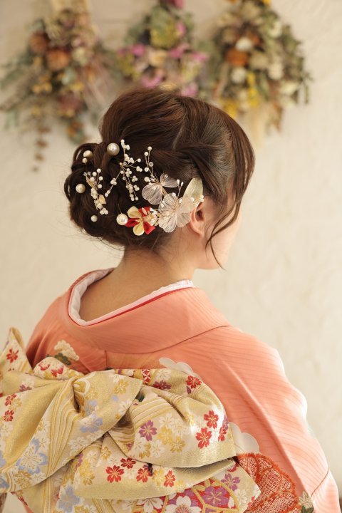 そうは言っても「アイライナーは引きたくない」「お気に入りのリップで…」などご希望はみなさんそれぞれですので、ヘアーメイクさんにしっかり伝えてほしいと思います。髪型はサイドを少し下ろして、後ろは編み込んで下気味にふわっとまとめる方が多いです。希望の髪型も事前に画像をLINEでいただければ美容師さんにお伝えします。