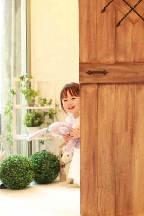 ドアの後ろにパパと一緒に隠れてもらって、こちら側からママに呼んでもらいます。 「あれ〜?いないなぁ。どこにいるのー?」ママの探している声にドアの陰でクスクス笑ってます。ちらっとお顔を出していたずらっぽく笑う仕草がとっても可愛いんですよね〜。お子さんの笑顔に癒される若葉スタッフです😄