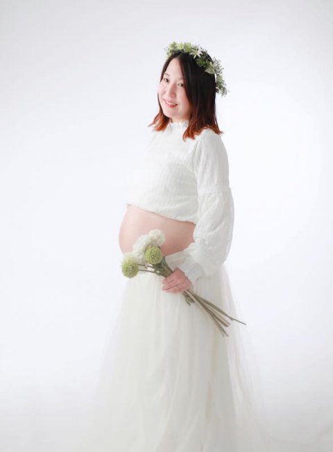 マタニティフォトの撮影は妊婦さんの身体に負担のないように、お着替えから撮影まで大体30分〜40分ほどで終わるようにしています。