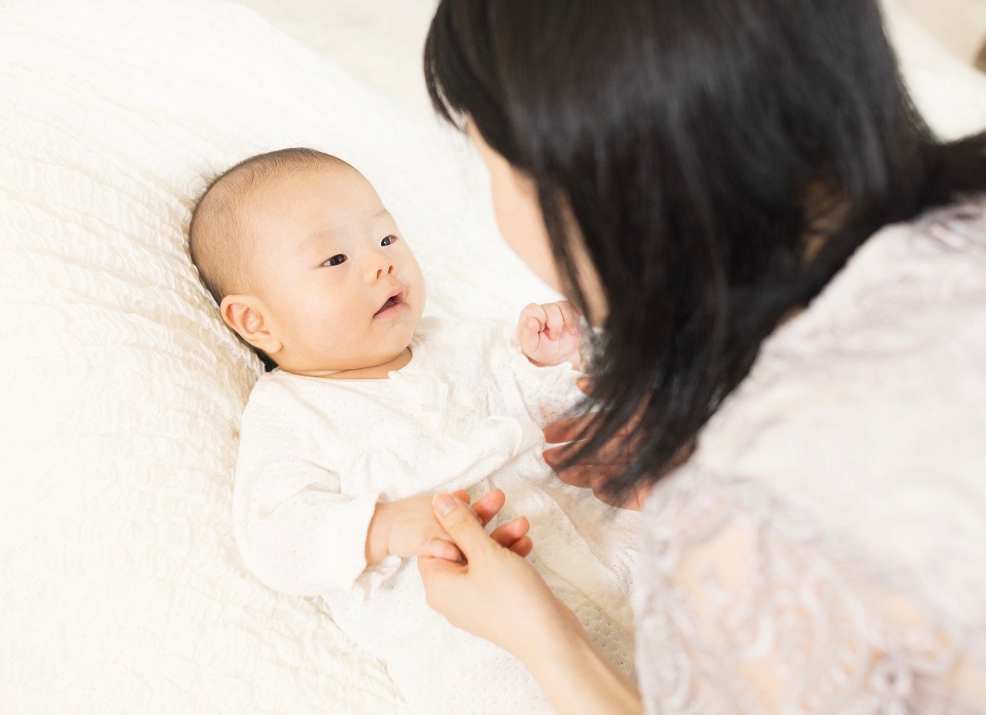 赤ちゃん一人のカットを撮影する時はパパやママにも助手していただいています😄 パパやママの声が聞こえると安心して、お顔が近づくと赤ちゃんも目を見て何かお話してくれます。「あ、ママだー」なんて声が聞こえてくるような空間にスタッフも癒されるひとときです。 途中で眠くなったり、おむつ交換したりと赤ちゃんの撮影はいろんなことがありますが、泣いても笑ってもねんねしてもみんな可愛いと思う撮影です。