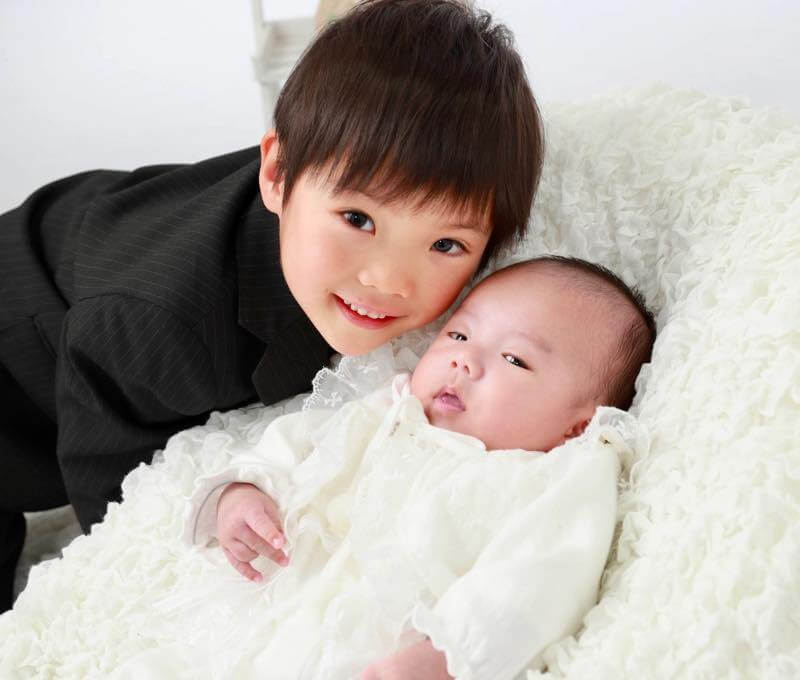 今日はかわいい兄弟のお写真を紹介します。お兄ちゃんも赤ちゃんの頃にお宮参りで若葉に来てくれたんですよ。すっかり大きくなって「僕の弟だよ!」とお世話してくれます。赤ちゃんのお写真撮るから応援してあげてね〜とお願いしたら、おもちゃの木琴片手にカエルの歌を歌ってくれました さーて次は何の歌かな?と思っていたら「USA!USA!カーモンベイビー」と振り付きで…スタッフ爆笑でした。