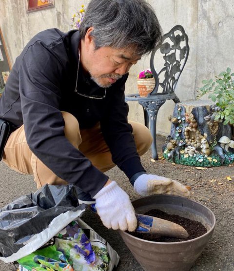 社長もクローバー植えました。2枚目の写真で見えるかな〜?芽が出てますよ〜。