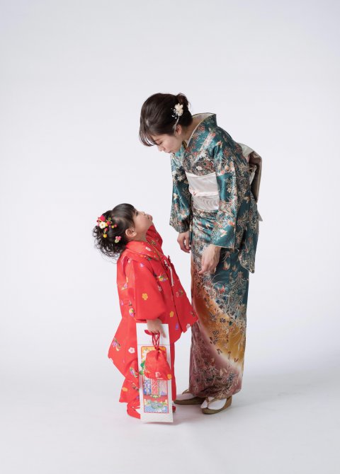 今、若葉では感染予防対策として午前1組様、午後は2組様の予約で進めています。ゆっくり撮影できますので、お子さまは和装洋装を楽しんだり、ママもお着物姿になることもできます。事前打ち合わせが必要なので、ご予定検討中ならお早めにご相談くださいね。